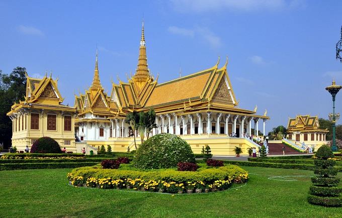 Kinh nghiệm du lịch Campuchia của mình là đầu tiên muốn chụp ảnh đẹp đó là Cung điện Hoàng gia Campuchia - đây là một trong những địa điểm tham quan mà du khách không thể bỏ qua khi đến Phnom Penh. Cung điện được xây dựng từ năm 1866 sau khi vua Norodom dời đô từ Oudong về Phnom Penh. Đây là một tổ hợp các tòa nhà phục vụ cho việc ăn ở, sinh hoạt của của Quốc vương, gia đình quốc vương cũng như quan khách nước ngoài. Theo kinh nghiệm du lịch Campuchia của mình thì du khách tới đây sẽ được chiêm ngưỡng những công trình thể hiện những nét đặc trưng của đất nước chùa tháp, cũng như sự xa hoa, lộng lẫy của cung điện. Ngoài việc chụp hình với các kiến trúc bên trong, du khách cũng không quên chụp hình cùng với đàn chim bồ câu ở phía trước cung điện.